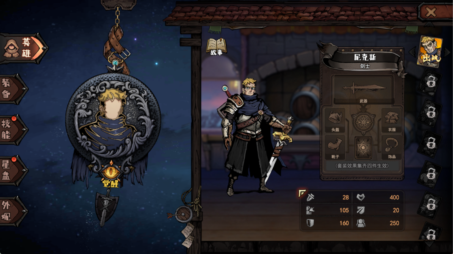 《魔灵武士》采用了暗黑系画风,整体色调较为昏暗,却巧妙地运用光源效果营造出独特的氛围。游戏画面虽为三渲二形式,但固定摄像机视角使其呈现出类似2.5D的视觉感受,别具一格。这种风格与暗黑主题相得益彰,让玩家仿佛置身于一个神秘而危险的世界中。角色设计方面,游戏中的角色形象丰富多样。以已解锁的角色为例,其外观虽看似中年人,但这种独特的设计打破了常规,给人留下深刻印象。而且,游戏中的角色骨骼动作丰富,在战斗中,角色的每一个动作都流畅自然,闪避、攻击等动作衔接紧密,尤其是闪避还能取消一部分攻击动作,在躲避BOSS攻击时十分实用,极大地增强了战斗的视觉表现力。