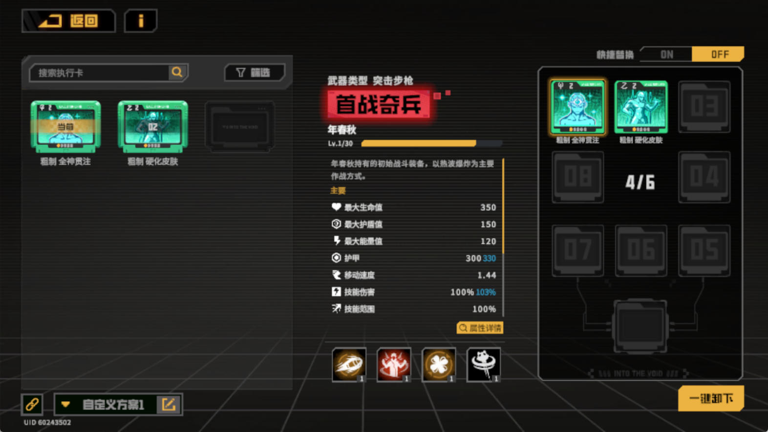 《驱入虚空》的养成内容丰富多样,为玩家提供了深度培养角色的乐趣。角色养成方面,玩家可以通过战斗累积经验值来升级角色等级,解锁全新技能或加强原有能力。每个角色都有自己独立的成长树,玩家可以根据自己的喜好和战斗需求选择不同的技能升级路线。此外,角色还可以通过装备武器、具装(皮肤)和战甲等方式来提升属性。武器是角色战斗的重要装备,游戏中有近百把武器可供选择,每种武器都有其独特的属性和技能。玩家可以根据角色的特点和战斗需求进行武器搭配,例如对于辅助型角色奥利弗·比克曼,可以搭配一把突触等离子作为主武器,再搭配一把微型冲锋枪作为副武器,以便在近距离进行自卫。具装则可以为角色提供额外的属性加成和外观变化,满足玩家对于个性化的需求。战甲则是一种强大的装备,可以为角色提供额外的防御和特殊技能,增强角色在战斗中的生存能力。