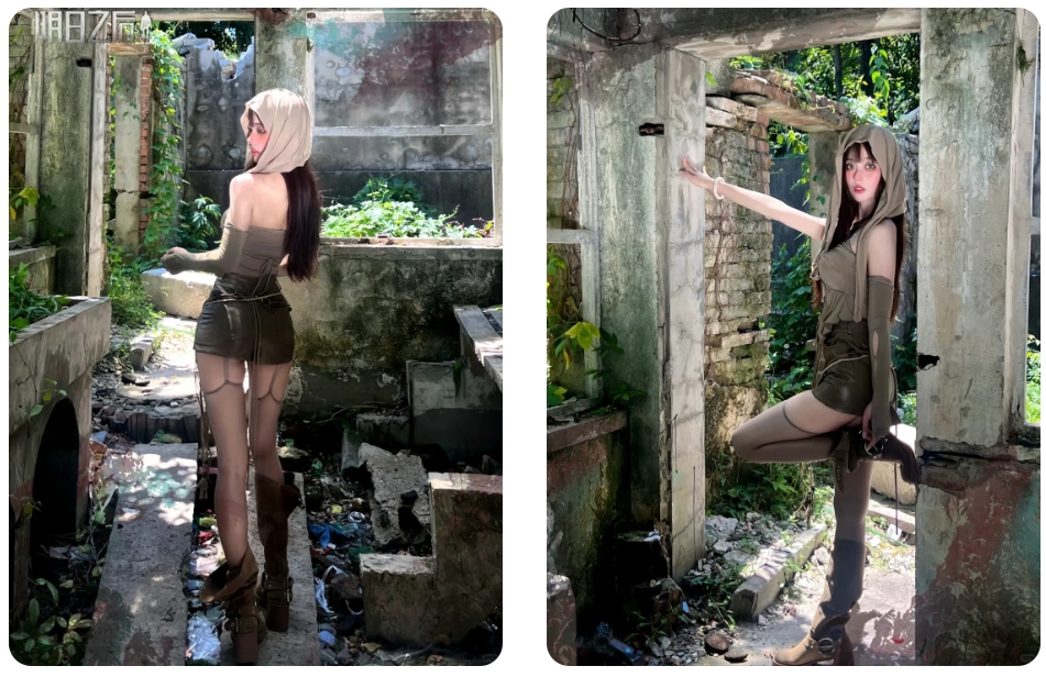 龙翼展开!红裙战神在废墟中定格留影