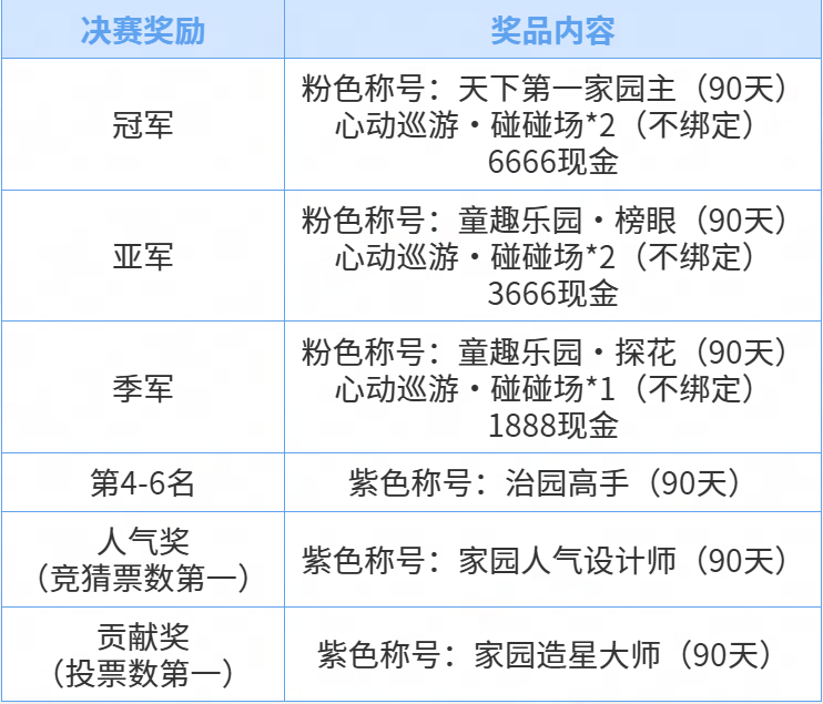 入围并进入复赛的设计师们可以获得额外奖励:紫色荣誉称号【吾心安处是吾乡】(90天)以及150家园设计大赛积分,积分可用于兑换软糖积木自选礼盒、全新动态装饰物银河·星辉,以及其他家园装饰物。