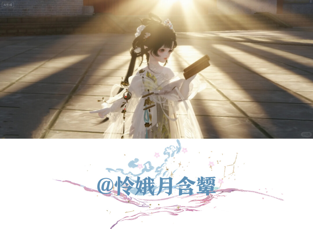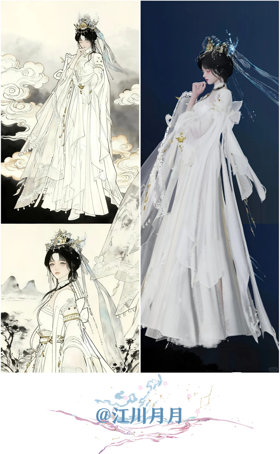 纯白无瑕的疏朗少女,轻点额头低眉沉思,宛如奇真绘墨里走出来的蟠桃园仙子。来自小红书的少侠@上天落地 对照片进行加工,建模融于水墨,恰应时装·奇真绘墨的涵义,造就了一种跨越次元的美。