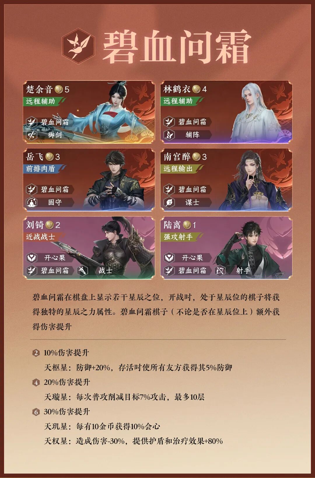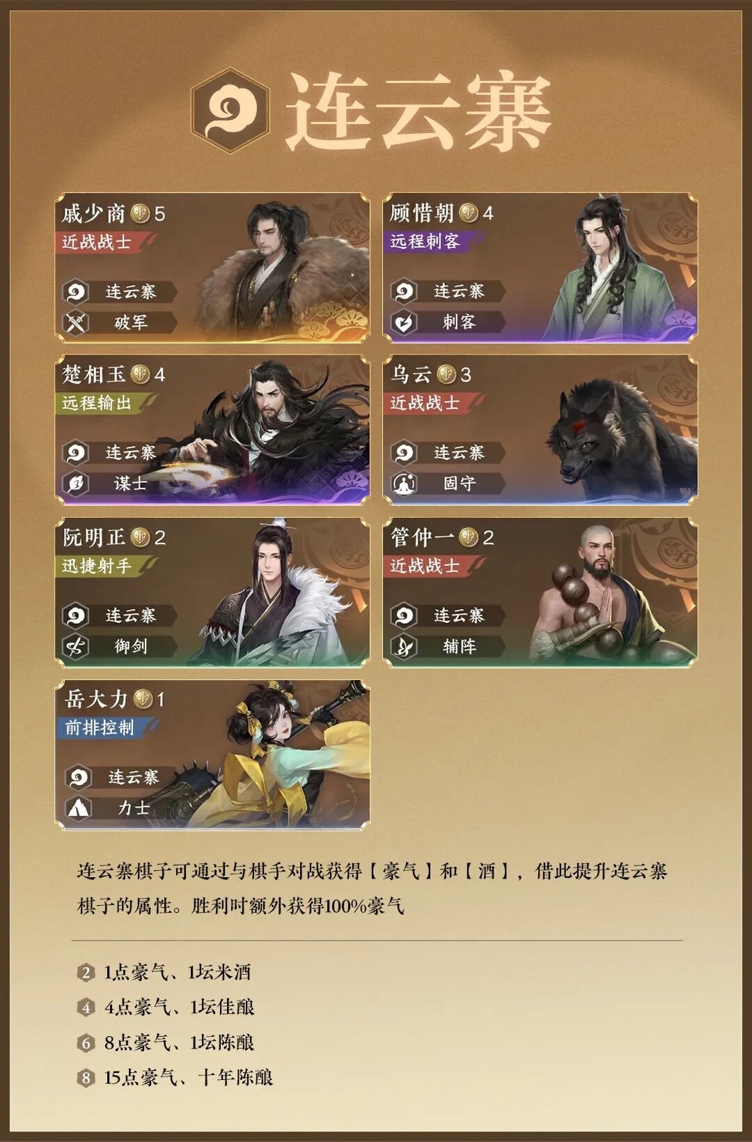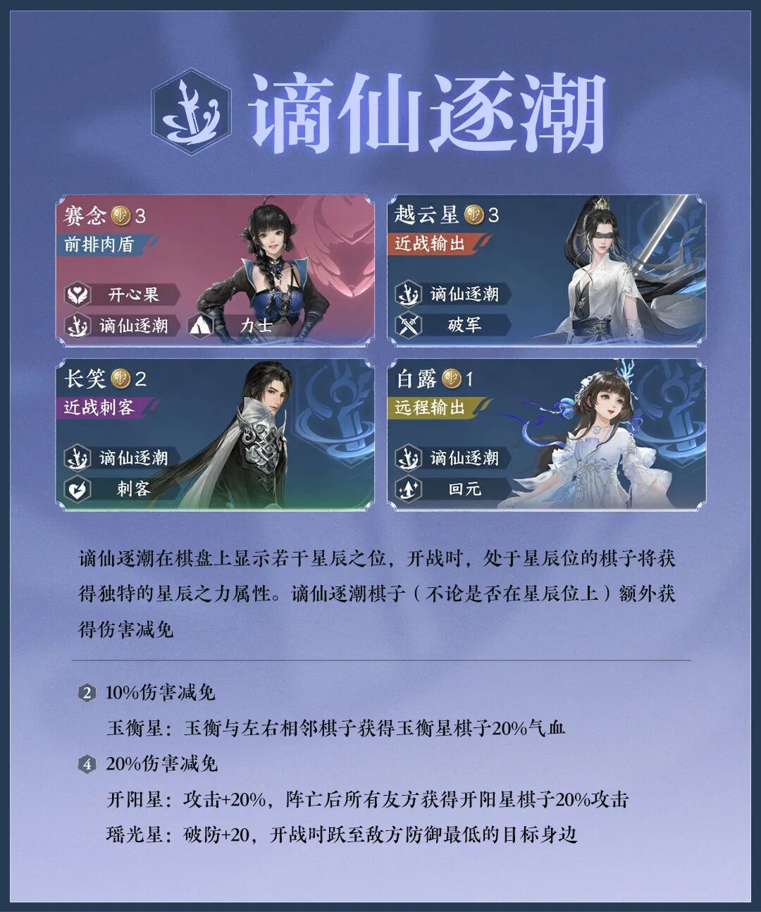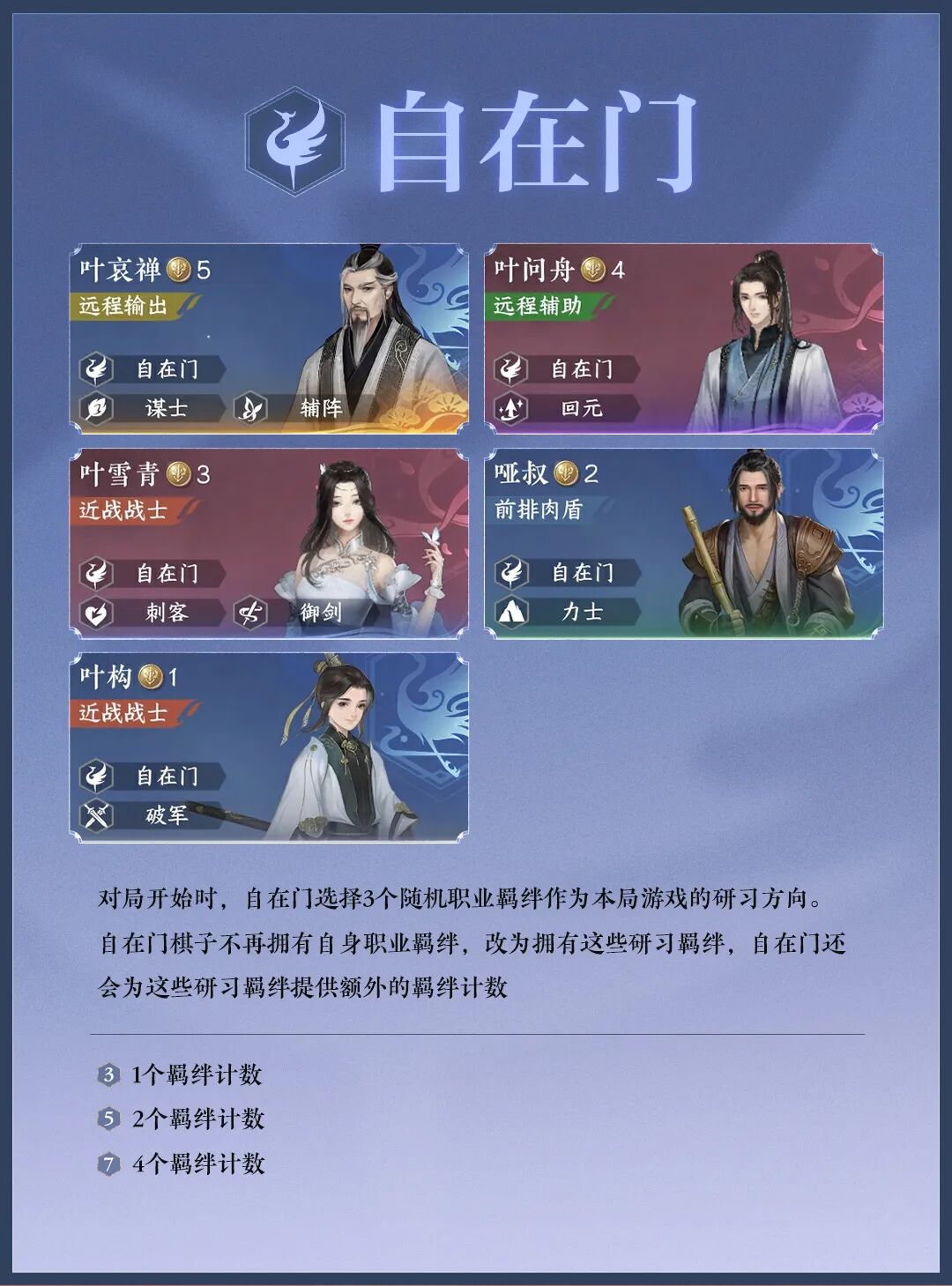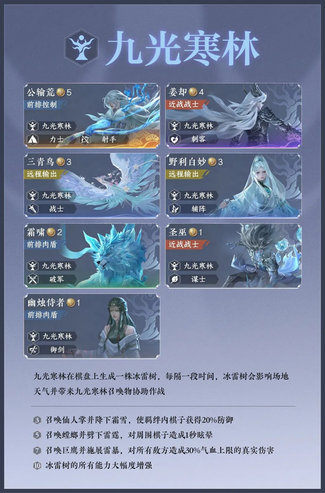 除了宗师引领的独特流派特性,S2赛季还将为棋局带来大量全新羁绊。无论是【自在门】、【九光寒林】,还是【冥渊】、【无更市】、【谪仙逐潮】、【碧血问霜】等等,每个羁绊均与逆水寒的宏大世界观和角色故事紧密相连。除了全新羁绊体验,也保留了【四大名捕】、【连云寨】、【小宠联萌】等同门已经熟悉的老朋友,大家在新赛季也能轻松把控熟悉的过渡节奏。