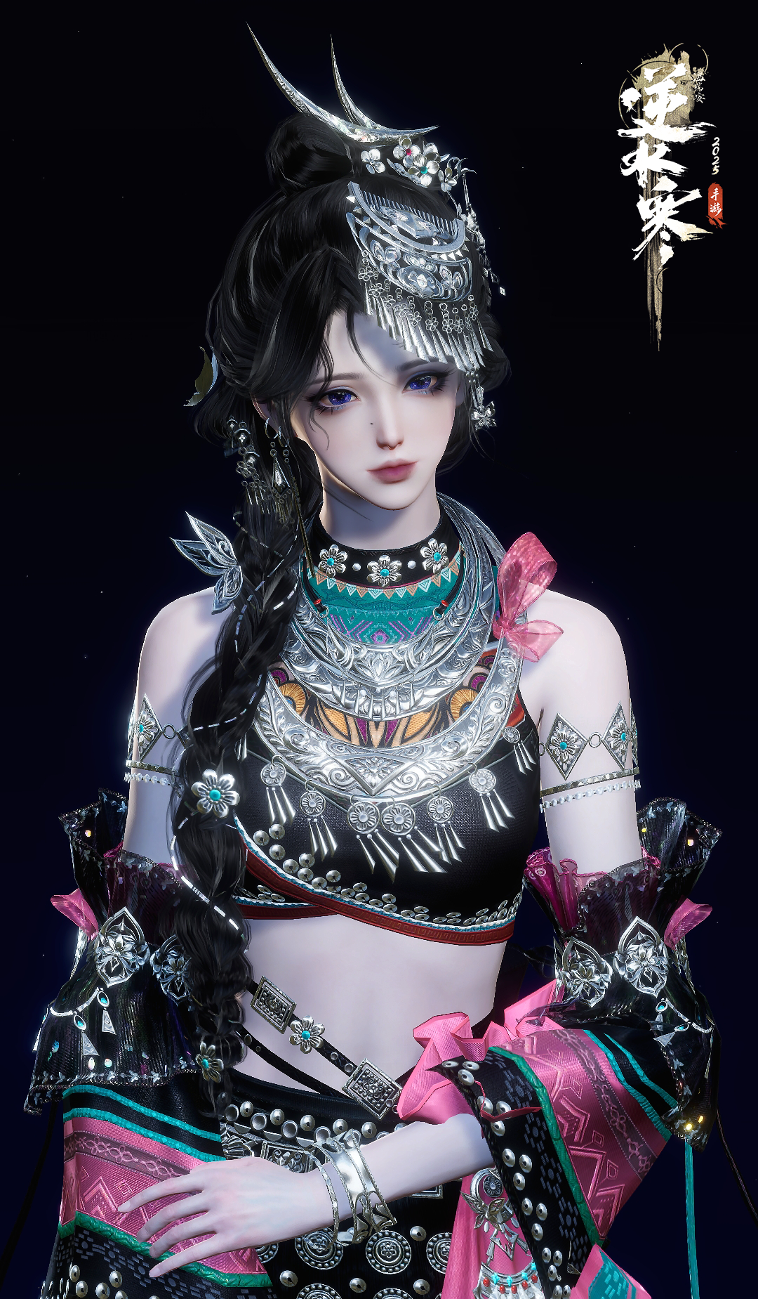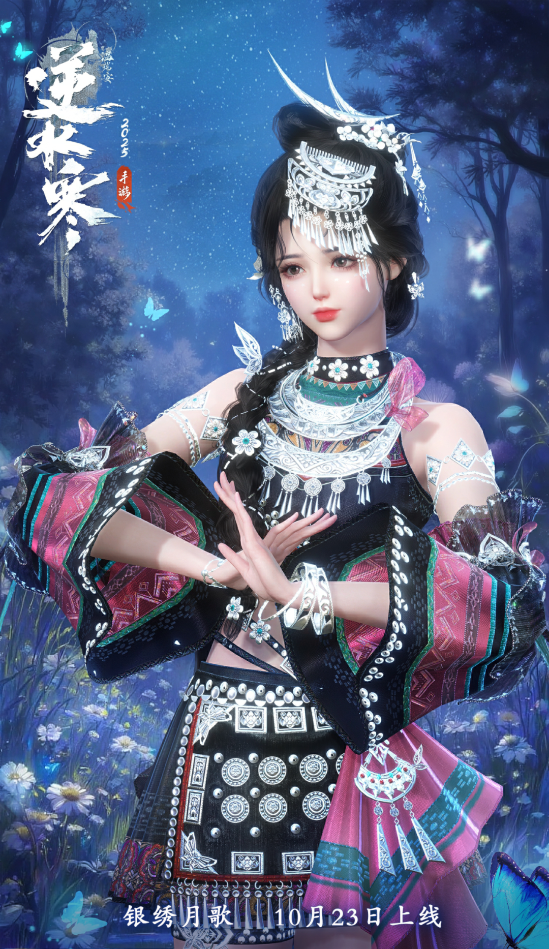 苗族时装【银绣月歌】将于10月23日上架商城,售价680纹玉,可使用代金券、半价券、限定纹玉。