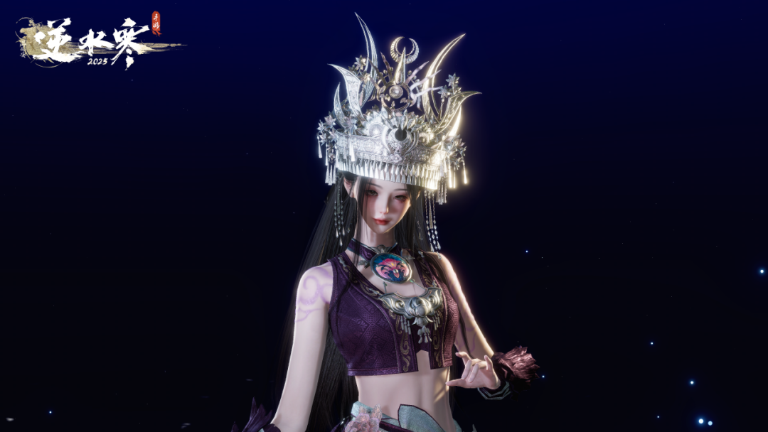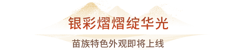 每当节日,苗族人民则会戴上极具苗族特色、繁复华美的银冠,高贵典雅。苗族配饰【银角盘春】将于10月23日-12月5日上架商城,售价280纹玉,可使用代金券、限定纹玉。