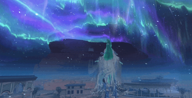 日月不同光,昼夜各有宜。须臾浮光乃伽蓝奇景。霁夜,霞光逸散,翡翠流光自墨色苍穹垂落,似烟非烟,若云非云,如身披银河的游龙盘旋于星月之间。此景盛时玄空如昼,时过无影无踪。