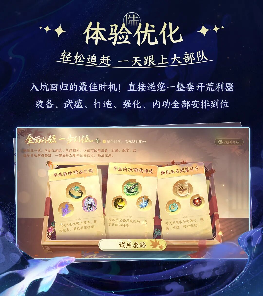 以上就是本期策划答疑的全部内容,我们将坚持与玩家一起“共创江湖”,持续优化细节体验,为大家在繁忙的工作学习生活之余,带来一个能安放武侠之梦的精神乐园,实现各类玩家的武侠梦想。感谢所有向我们建言献策的玩家,江湖因为大家的声音变得更加美好,开发组也欢迎大家继续通过各个渠道向我们反馈意见和建议。所有江湖偶遇,都是宿命相逢。