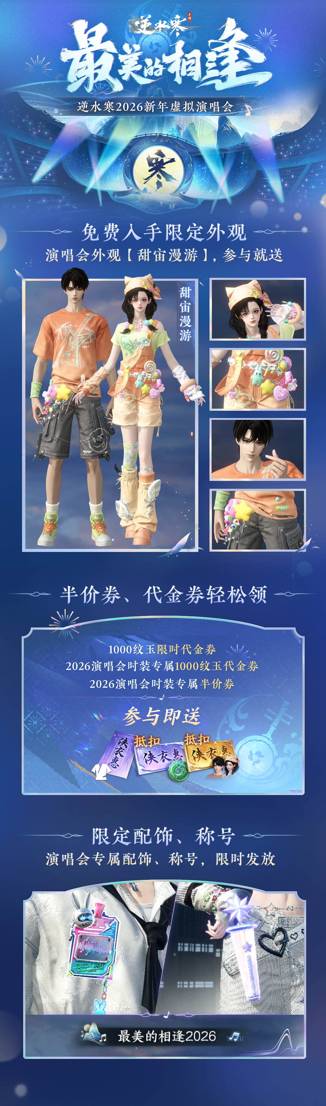 演唱会专属外观【甜宙漫游】参与就送!更有1000纹玉限时代金券、2026演唱会时装专属1000纹玉券、演唱会时装专属半价券轻松领!