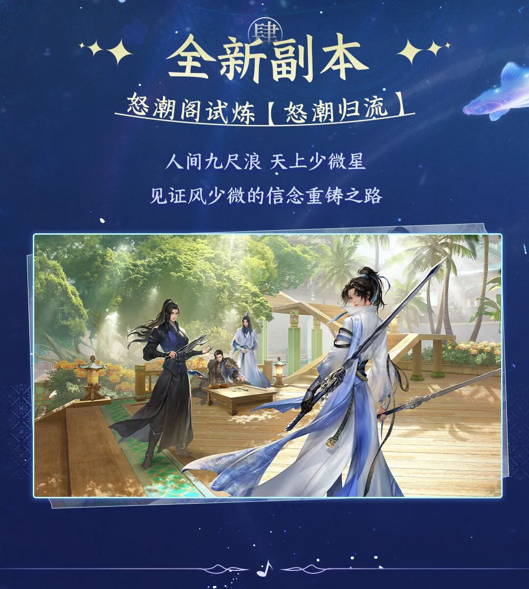 此外,第二届跨服帮战联赛“万仞争锋”即将开打,赛程全面优化助您打个痛快;首个“江湖势力”怒潮阁试炼副本【怒潮归流】,邀您见证风少微的信念重铸之路……下面请看版本前瞻——