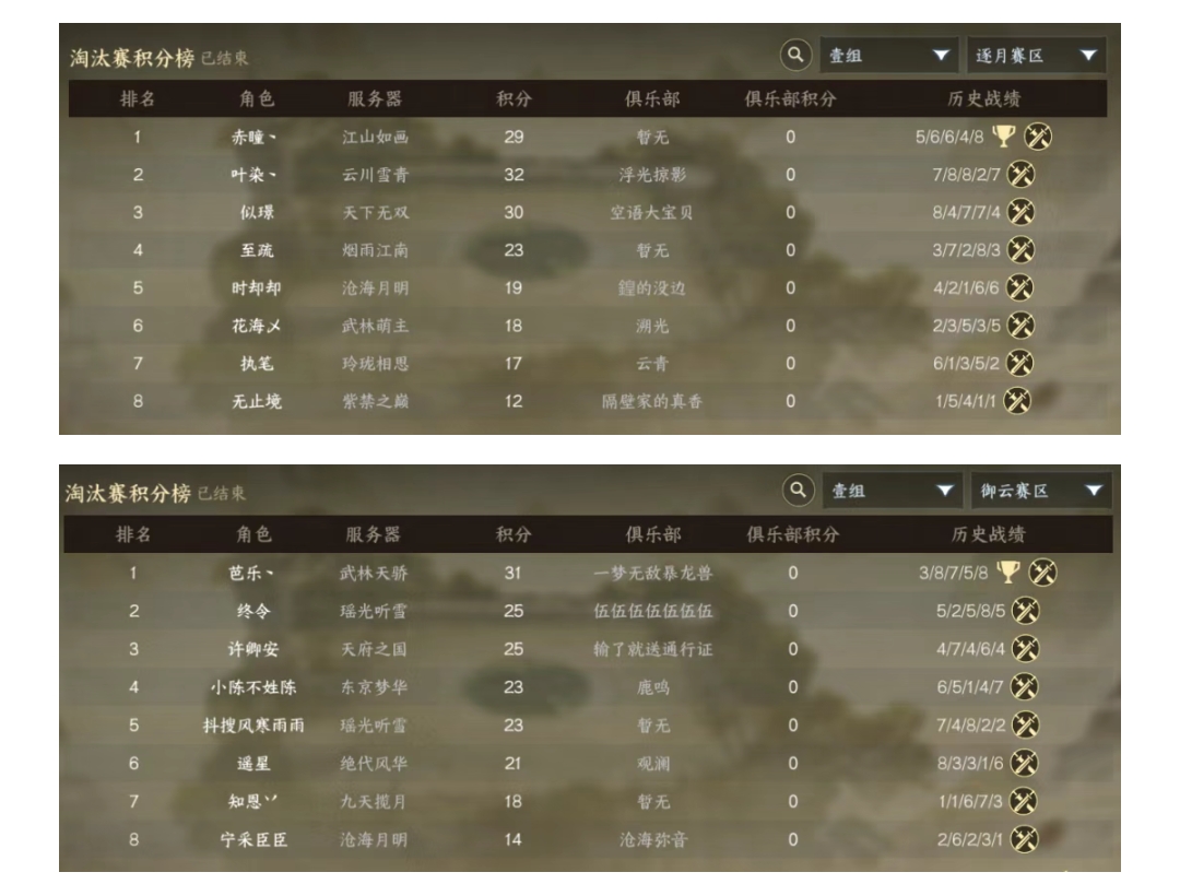 来自【江山如画】服务器的【赤瞳丶】与来自【武林天骄】服务器的【芭乐丶】,在近10万名侠棋高手中脱颖而出,踏过小组赛的烽火,历经淘汰赛的淬炼,最终在万众瞩目的上海线下总决赛,以智为刃、以谋为盾,执子问鼎,摘得逐月赛区和御云赛区的桂冠!