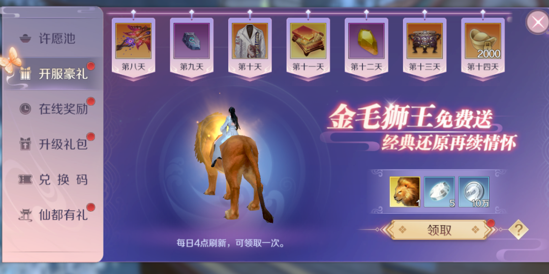 每日进入完美大陆,即可领取开服豪礼。限时稀有坐骑、兽卡、天书、飞行器、大量元宝都在等着你~