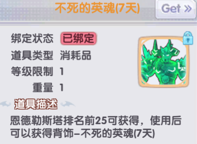 排名前25,则可以再额外获得一件背饰-不死的英魂(7天)的外观。