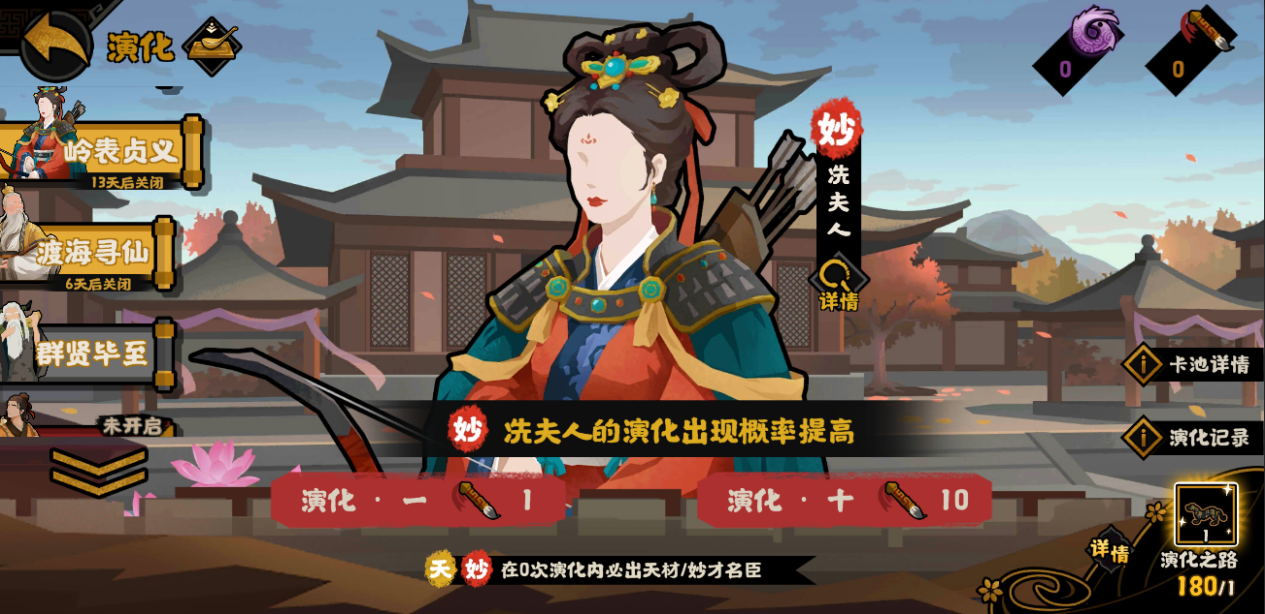 “岭南巾帼威南疆,抚民安邦誉千秋”10月31日至11月13日,妙才名臣·冼夫人演化概率限时上升!