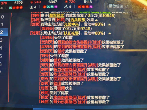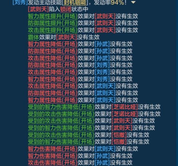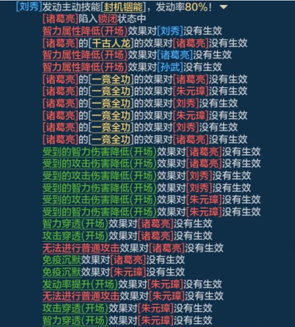 不过封机锢能的【锁闭】机制固然强势,却依然属于战时增益可被驱散,因此拥有高技能发动率的刘秀又一次成为全场焦点,90%概率的光武中兴+80%概率的扶正祛邪,直接每回合驱散一次,完美克制封机锢能