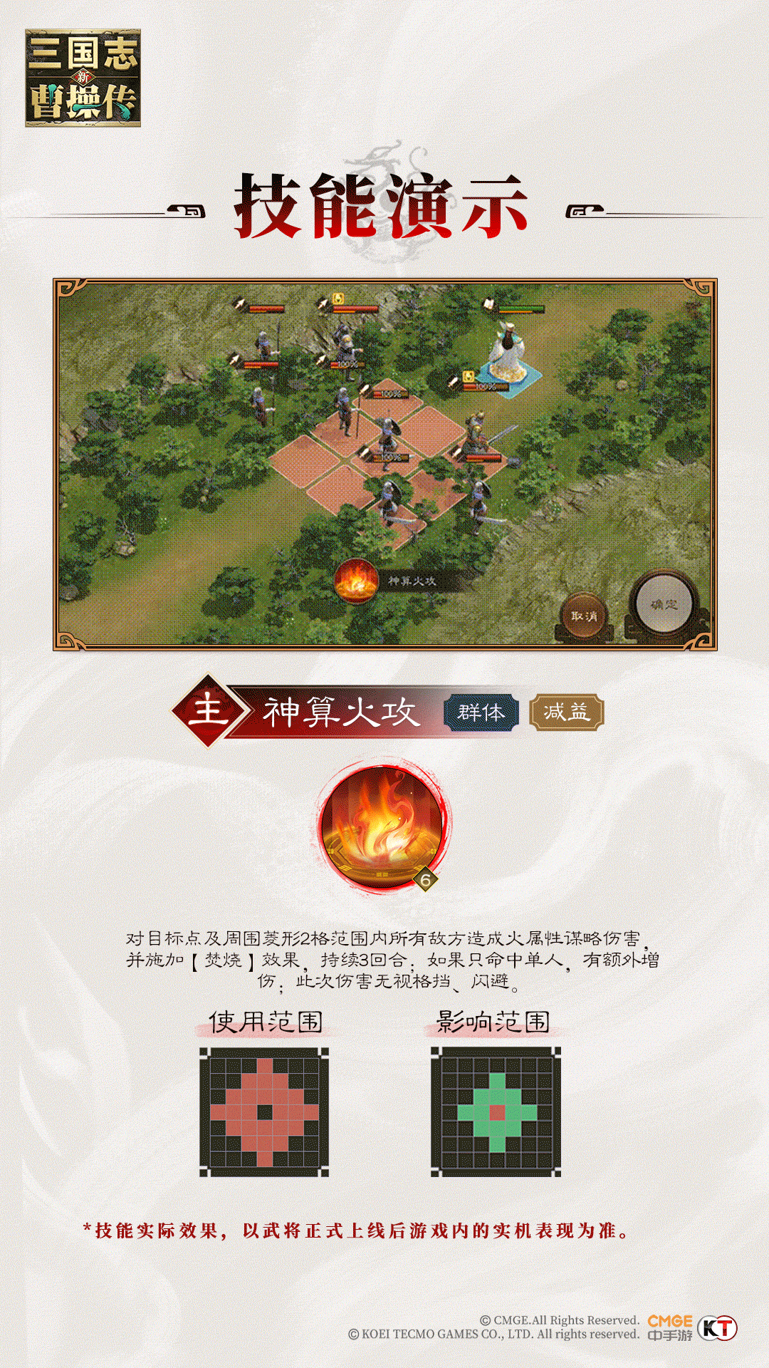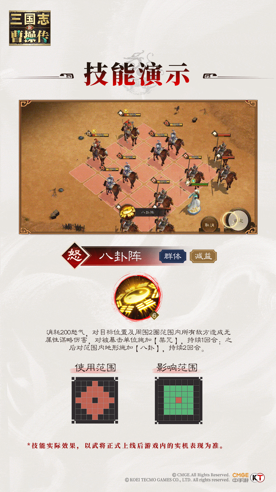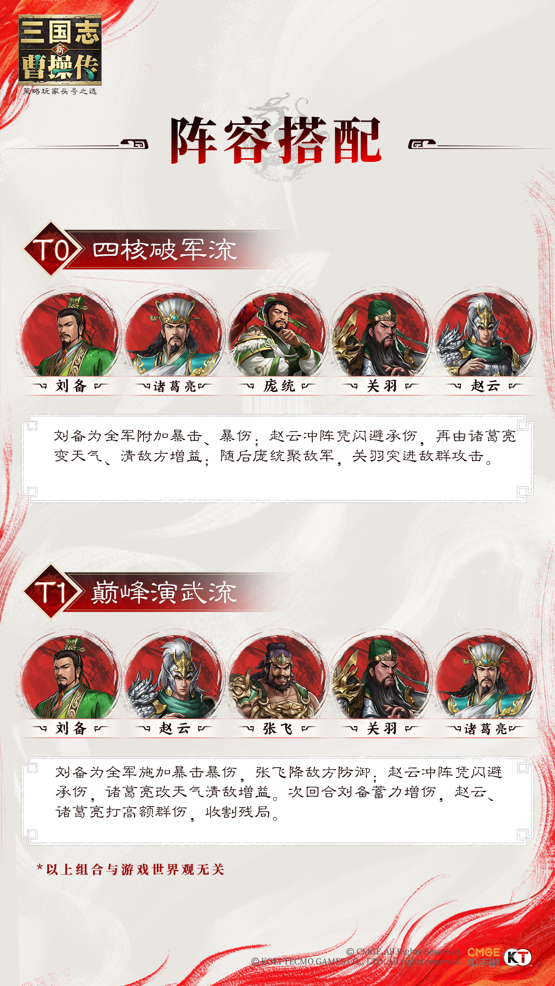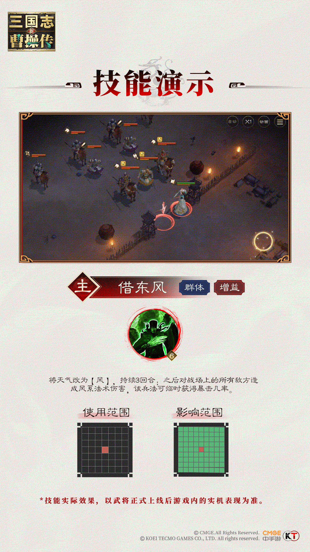 诸葛亮作为中国传统文化中 “忠臣” 和 “智将” 的典范。在《新三国志曹操传》中,诸葛亮是队伍中关键的谋略核心。他的技能机制丰富且强大,不仅可以提升自身多项属性,还能清除敌方增益并追加风属性伤害。尤为关键的是,当自身怒气归零时,还将触发【空城】机制 —— 凭借 “无法被选中” 的特性实现自保!
