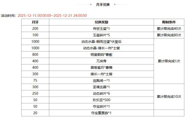 2、月牙 2025-12-22 00:00:00 到期,到期自动删除不回收。传世玉玺未消耗的可用于下期活动;