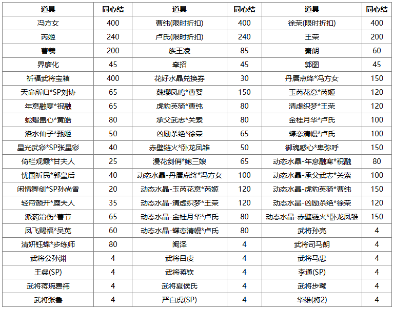 1、同心结可兑换奖励,若兑换奖励是在此次活动前已拥有的永久武将、皮肤、三国秀,则无法重复兑换。