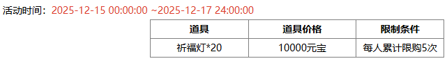 活动时间:2025-12-15 00:15:00~2025-12-19 24:00:00