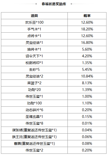 购买后获得祈福灯*10、豪华夺宝券*2、欢乐豆*1500、菜篮子*50