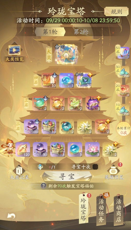 道友可通过活动任务,宝塔商店获取寻宝次数