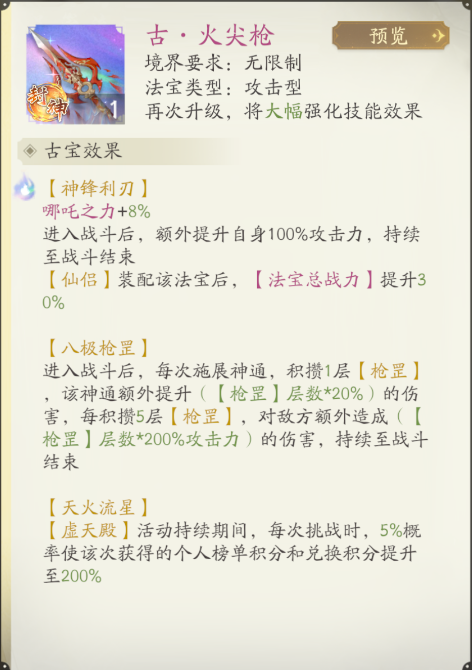 除此之外在封神之战中获得榜首还有道器·山河社稷图、古宝·火尖枪等你来拿!