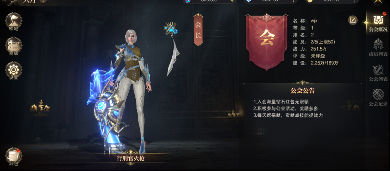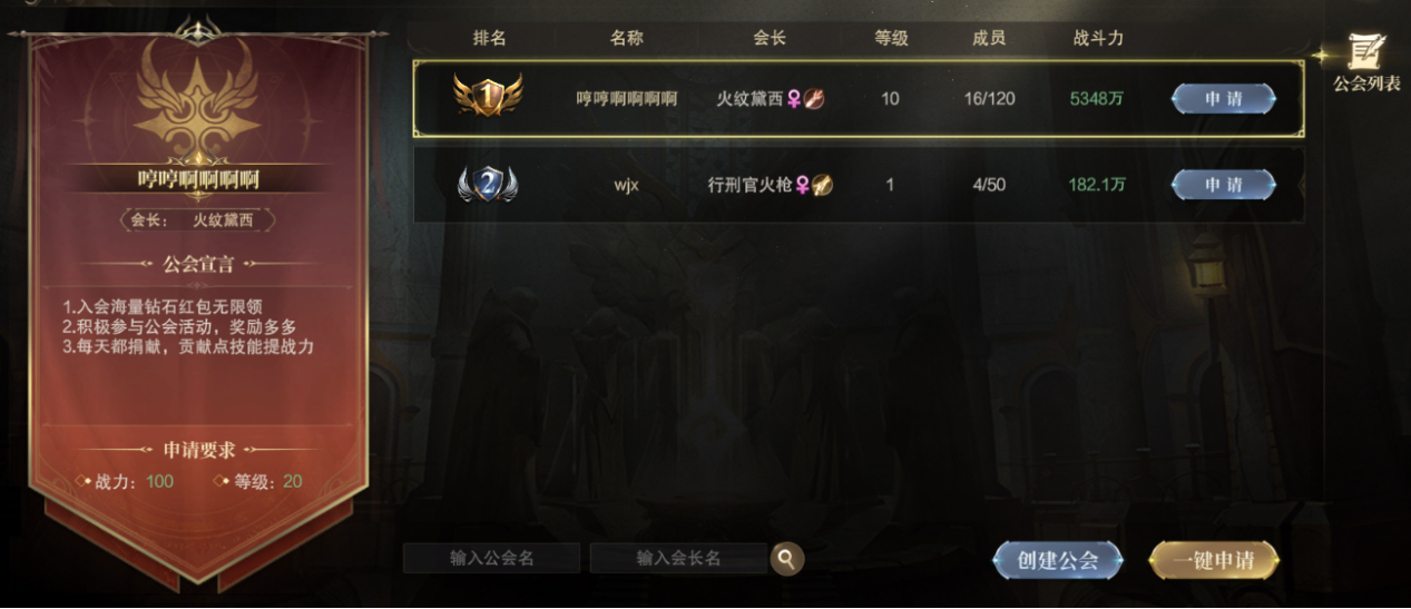 玩家达到一定等级后可以创建公会,也可以加入公会。