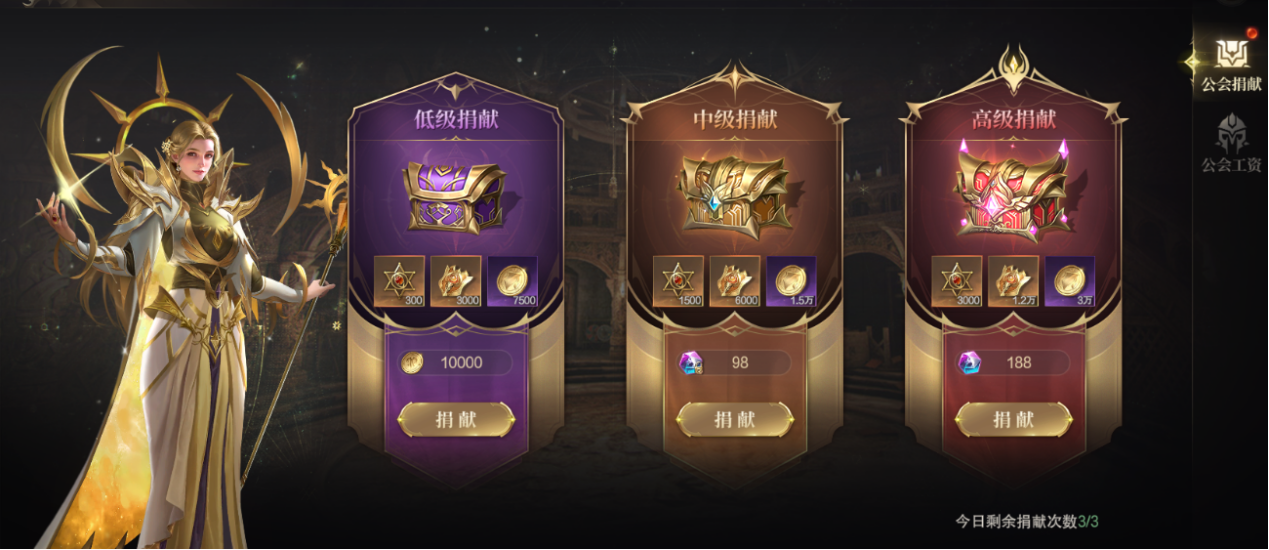 公会成员可以通过每日捐献来提升公会的等级,并获得公会贡献。