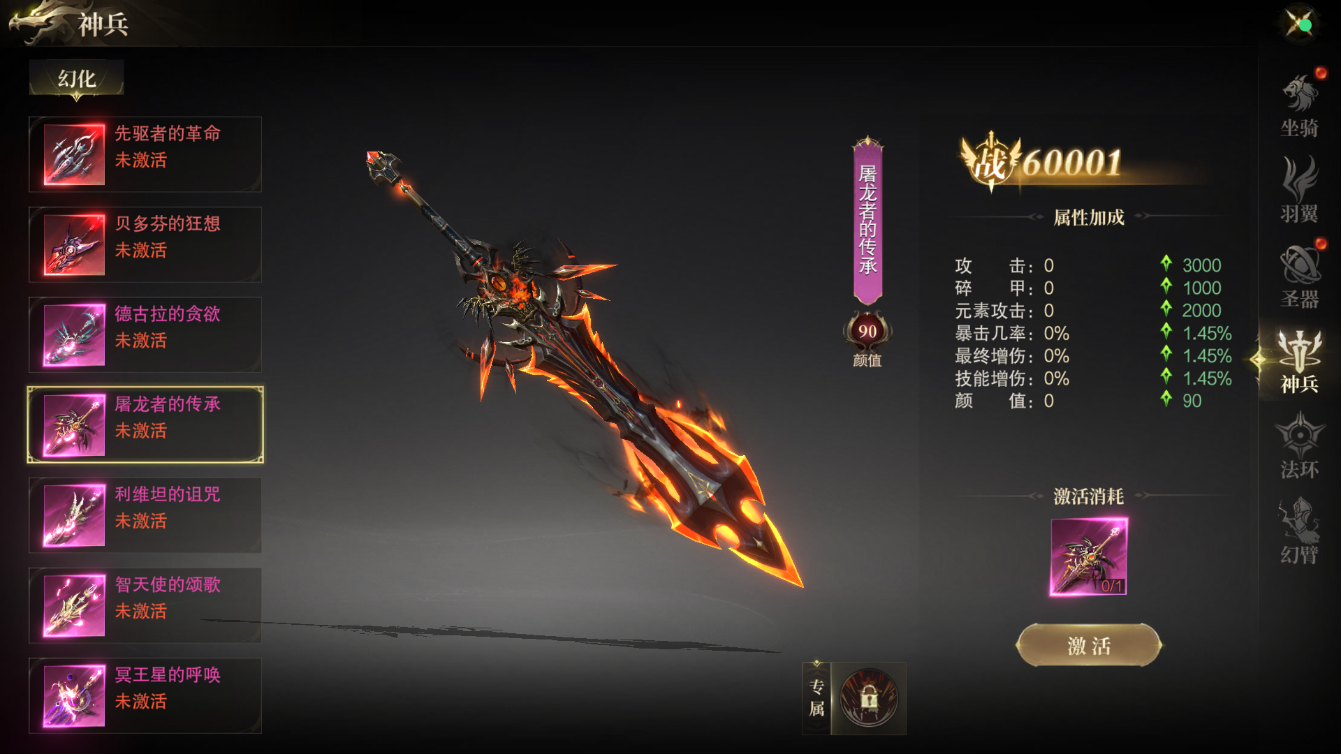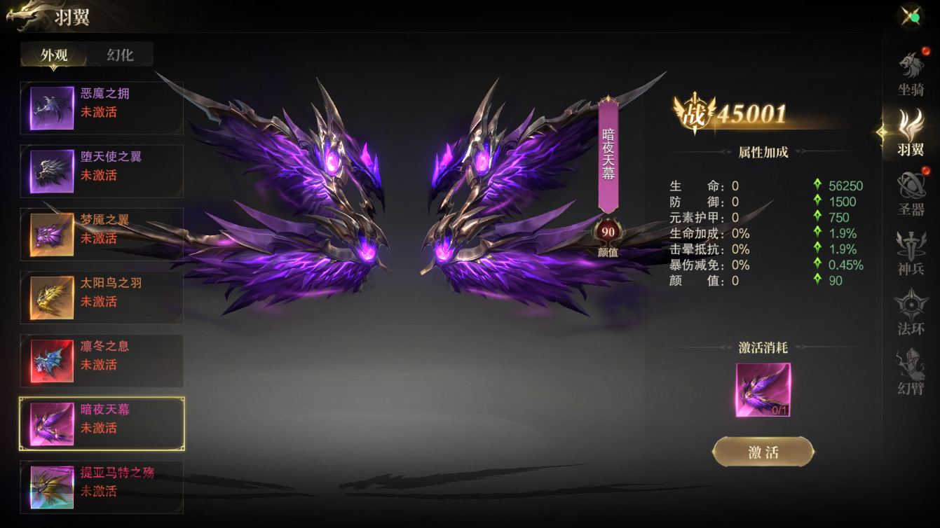 羽翼、圣器、神兵、法环……这些不仅是游戏中重要的外观系统,更是实力的象征。激活对应 的外观后,您将获得大量属性加成,并在主界面展现出令人瞩目的人物形象。每一次升级, 都是一次全新的蜕变!