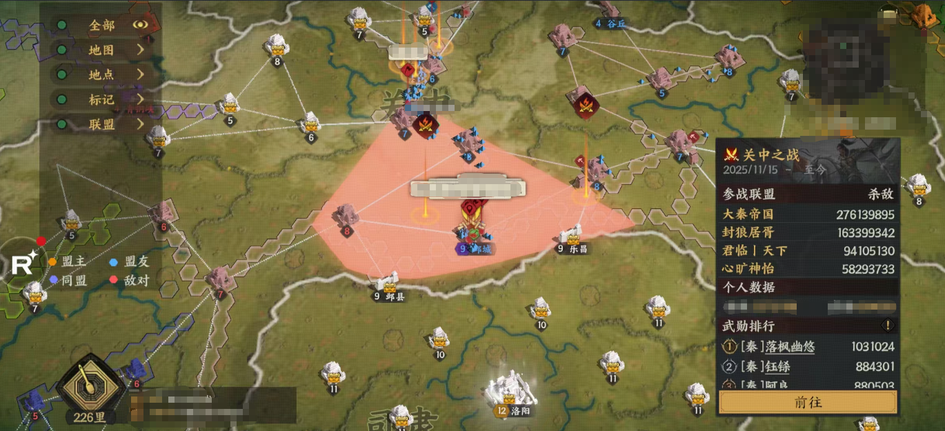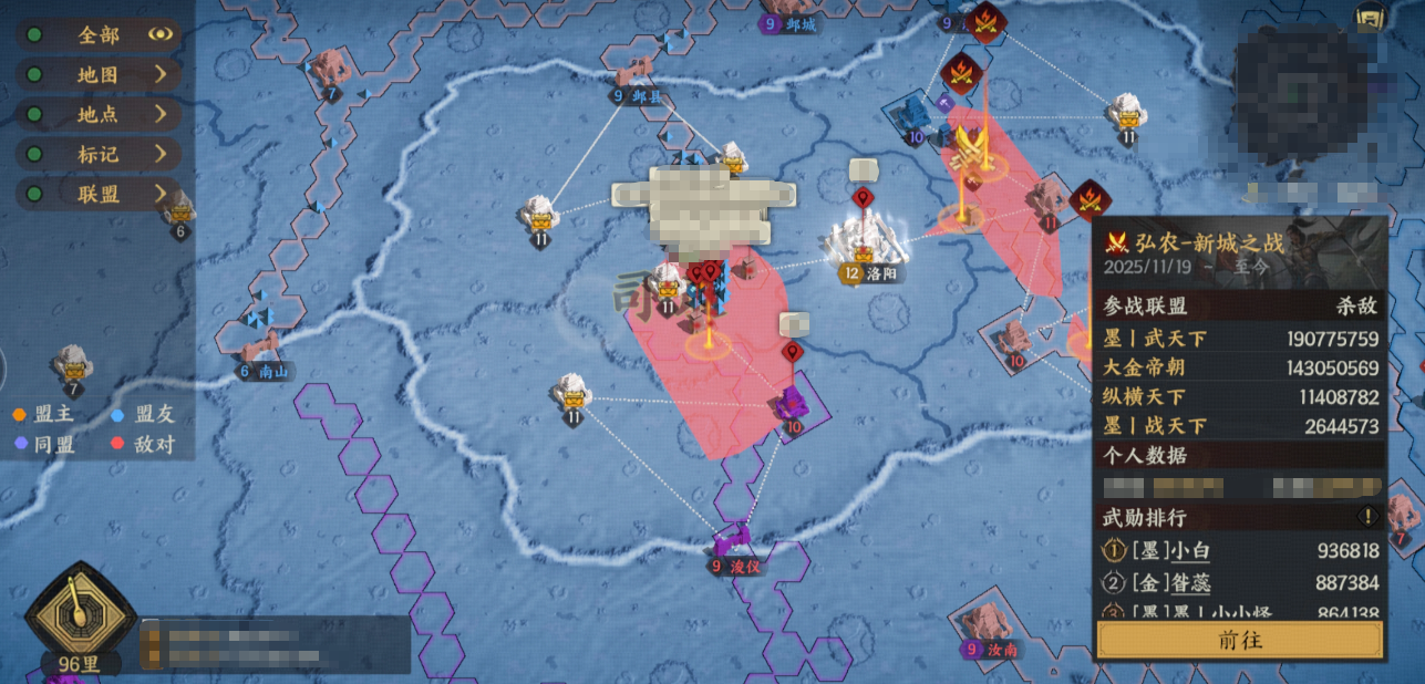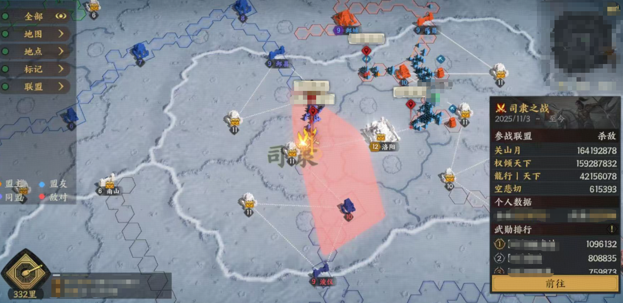 阵营反复横跳看得让人揪心?没事儿,104区直接坚守到底把热血重新点燃!【权倾天下】刚和盟友【龍行丨天下】踏进司隶地界,就迎面撞上【关山月】与【空悲切】联军,两边连客套话都没说,直接在洛阳一线开干,开关才两天,总战损就飙到4亿!这火力谁看了不称一句狠人?