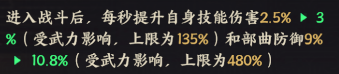 弓兵吕布在后排能安全叠专武“方天画戟”,时间越久伤害和防御越高,越战越强!【鸷搏狼抗】命中人越多加成越高,实战中手动攻击敌方密集部曲,吃满增益。