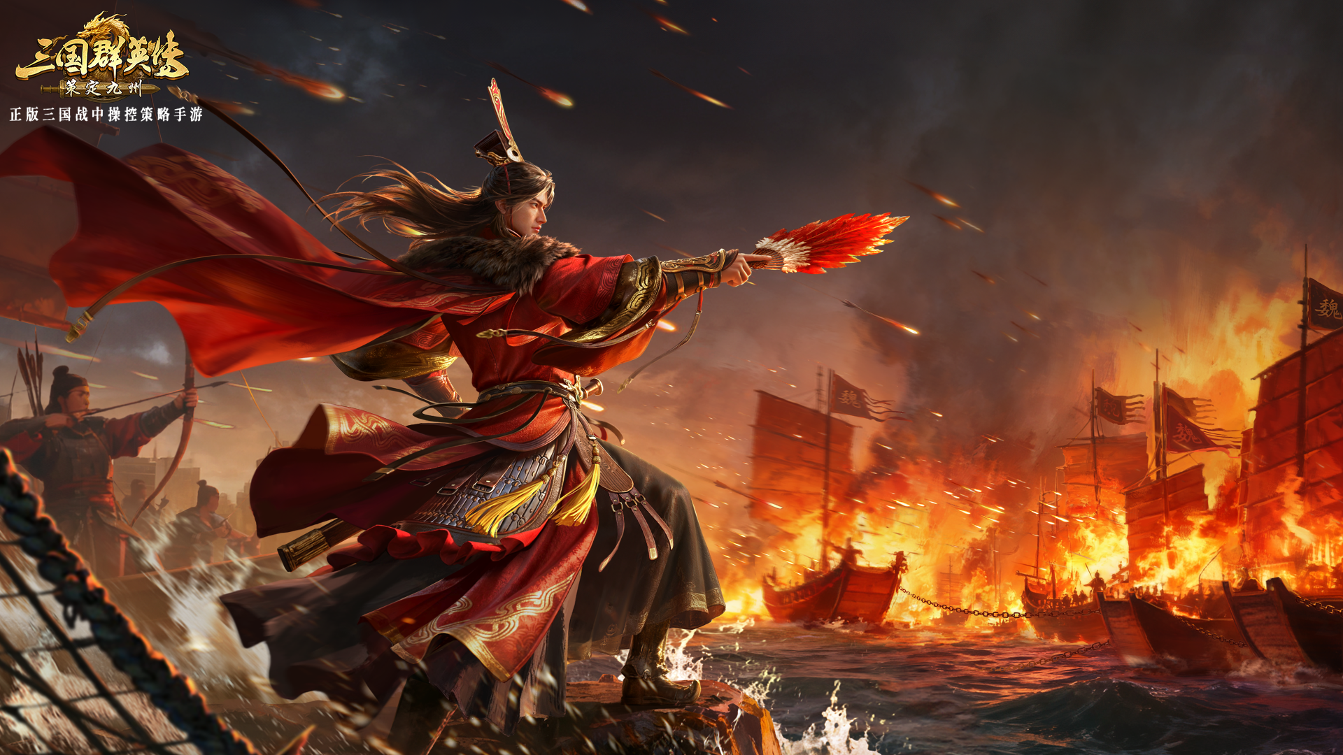 各位主公好呀,【壁纸精选】第四期来啦! 红袍曳动于赤壁火海之前,羽扇轻扬间尽显破阵锐志,本期九妹为各位主公带来了周瑜「烈火雄姿」壁纸,希望主公们喜欢~