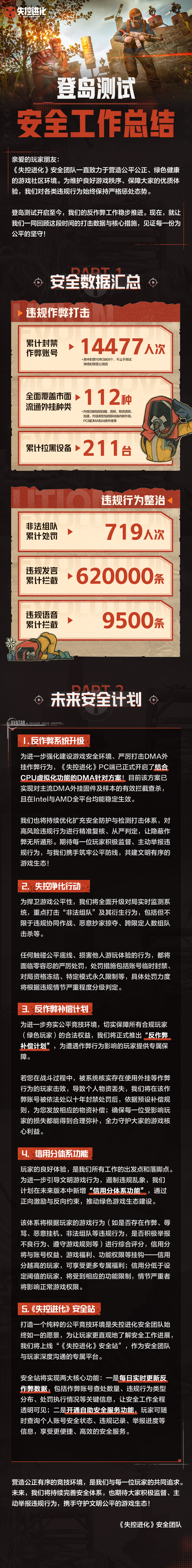 在登岛测试期间,我们始终坚守公平竞技的底线,持续推进反作弊工作并取得阶段性成果。