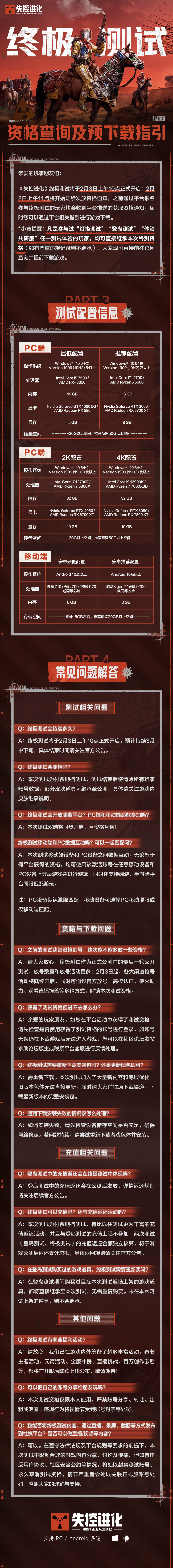 🥰兄弟伙们准备好了吗?大家期待已久的《失控进化》终极测试资格查询及预下载现已开启,游戏将于2月3日10:00正式开服!