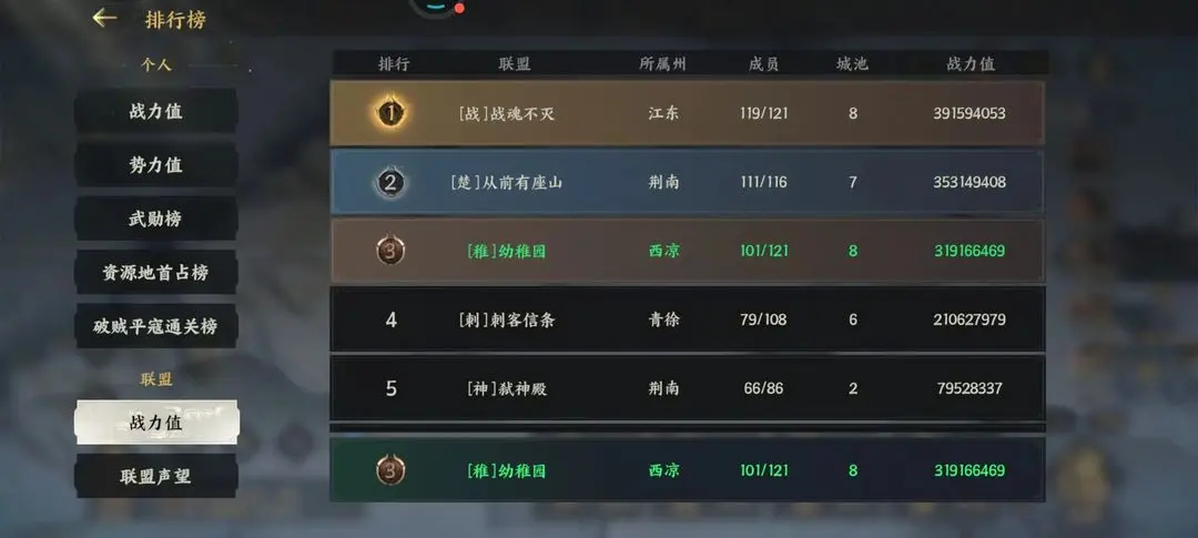 在面对人数和资源都处于优势的河北联盟时,凭借其在内部纷争中磨练出的默契配合爆发出强大的战斗力,以少胜多击败了河北联盟。如今已跻身三盟,完美诠释:今天你对我爱答不理,明天我让你高攀不起!