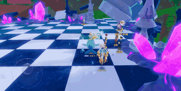 旅程的最后一站,来到仙境花园最深处——爱丽丝的巨型棋盘。准备好和爱丽丝来一局了吗?高耸入云的棋子,黑白分明的巨大棋盘格,场面震撼无比!但小心,别被散落在棋盘各处、闪闪发光的魔法宝石勾走了魂——多米的第一盘棋,可就是被这些亮晶晶的小家伙分了神,输得心服口服(才怪)!