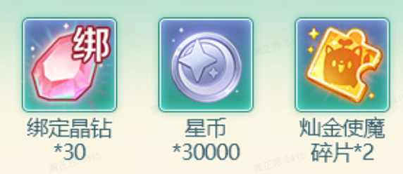 30名玩家送出:30r游戏礼包(内含绑定晶钻*30、星币*30000、灿金使魔碎片*2)