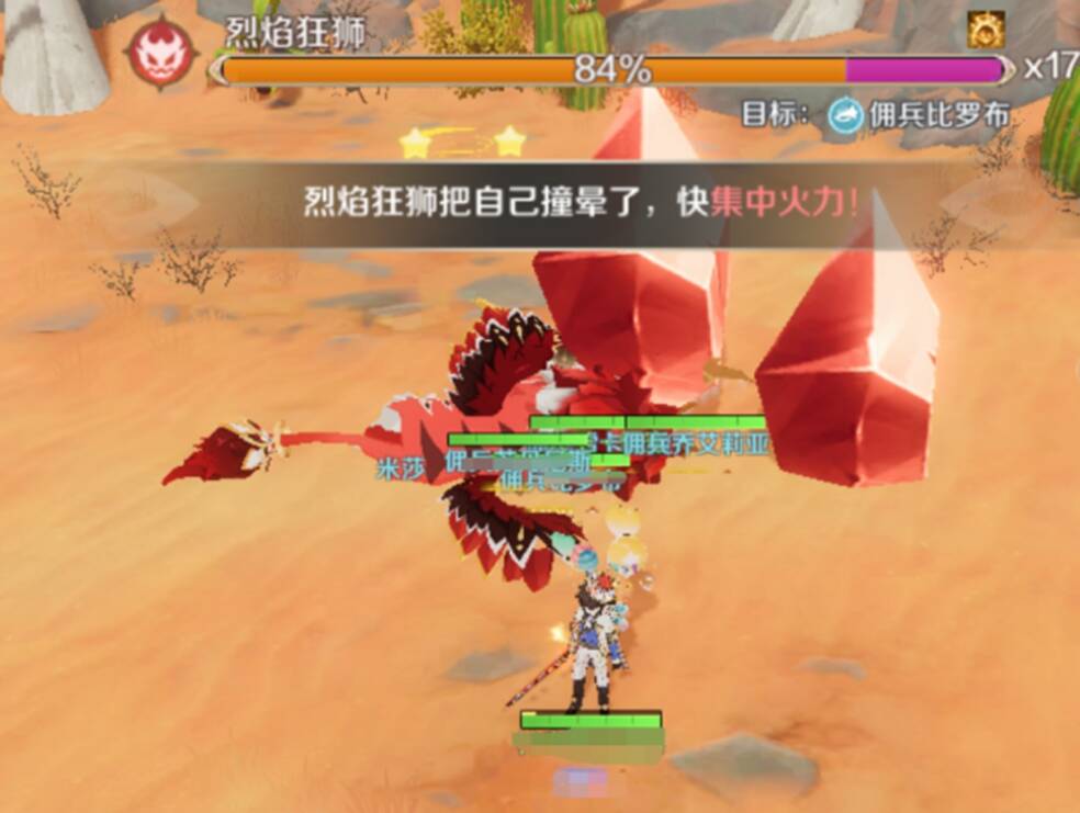 主要通过召唤两根红色的石柱攻击,主要引导BOSS撞在石柱造成眩晕就可以一直输出了。