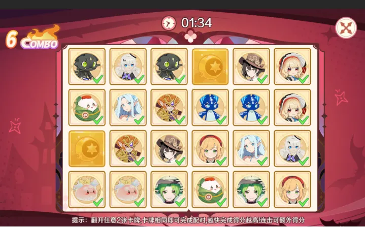 活动规则:翻开卡牌,找到相同图案即可配对。秘诀在此:连续成功匹配,能触发酷炫连击,分数翻倍上涨!你的记忆力和反应速度,能拿下多少连击?快来试试吧!