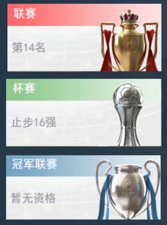 联赛5-8名可参与精英联赛,通过每轮两场比赛决出最终冠军,最终获得联赛、杯赛、冠军联赛可获取三冠王