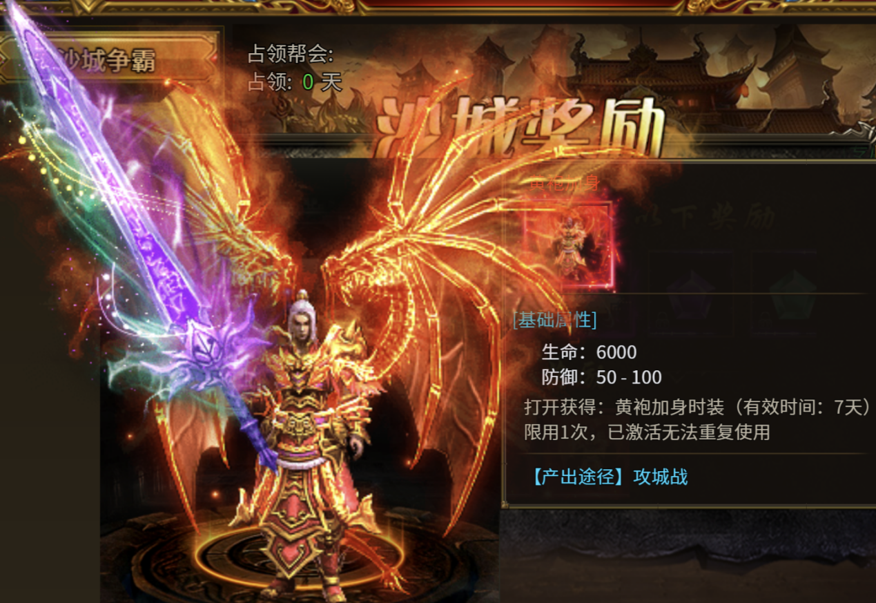【开启时间】◆ 首次攻城:开服第3天 20:30-21:00◆ 常规攻城:每周六 20:30-21:00