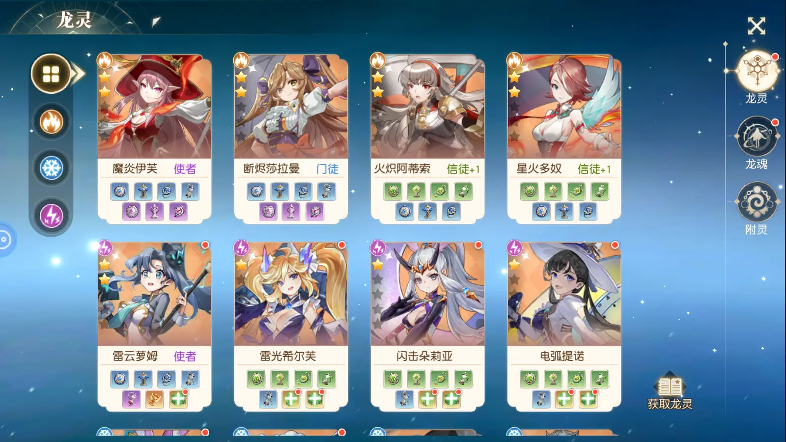龙灵系统是强化主角技能的系统。玩家可通过激活龙灵佩戴装备获得对应的属性加成和技能加成。龙灵是通过任务系统的启示录界面一定阶段必定获得。因此不用担心获得不了的问题。当单个龙灵的7件装备都装备时可以进行突破
