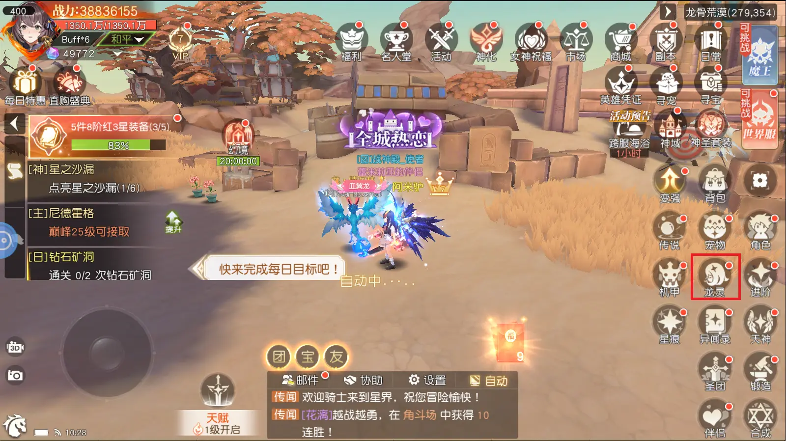 系统入口为主界面右下角的龙灵按钮: