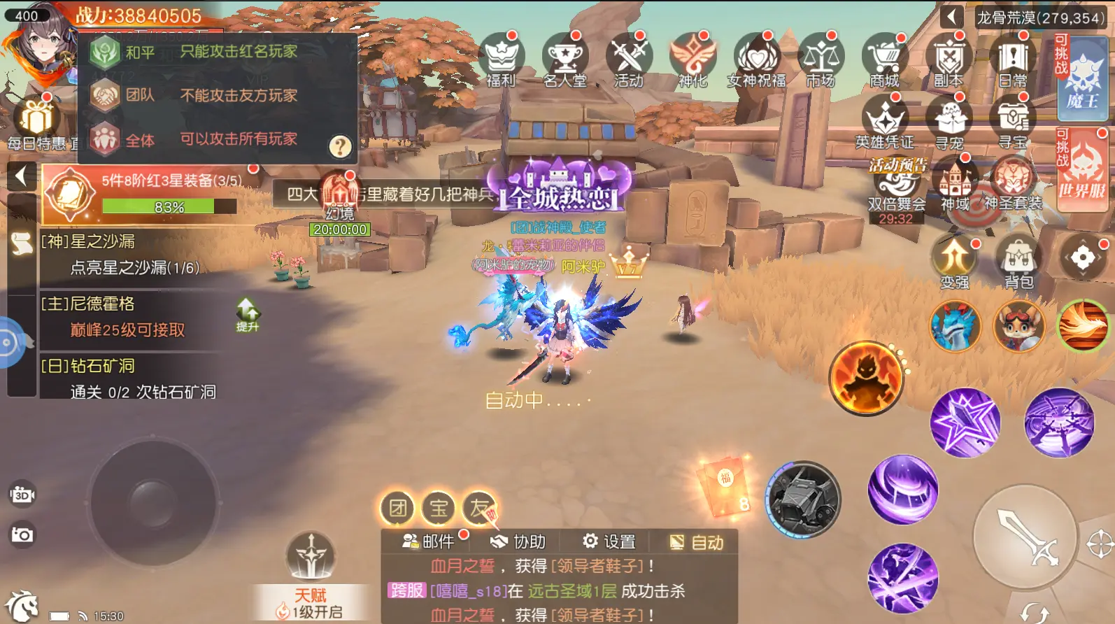 玩家可在战斗模式中选择和平、团队、全体3种战斗模式。