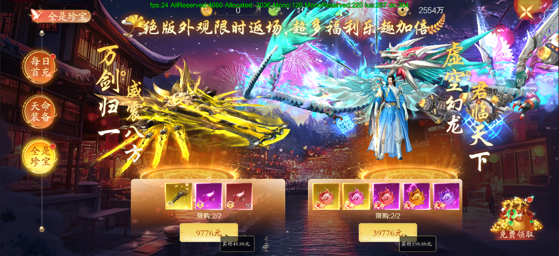 万剑归一和虚空幻龙两绝版外观限时返场,超多福利等你来拿。活动期间,限购2次