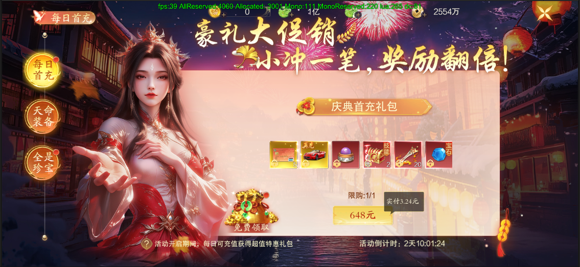 活动期间内,可购买每日首充礼包,每日限购一次