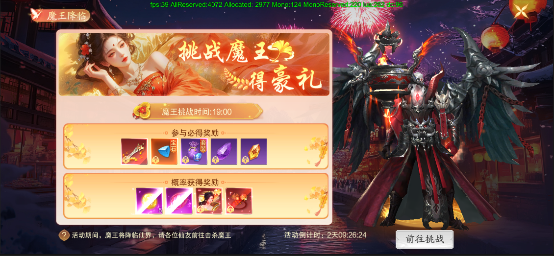 活动期间内,每日19时可对魔王进行挑战