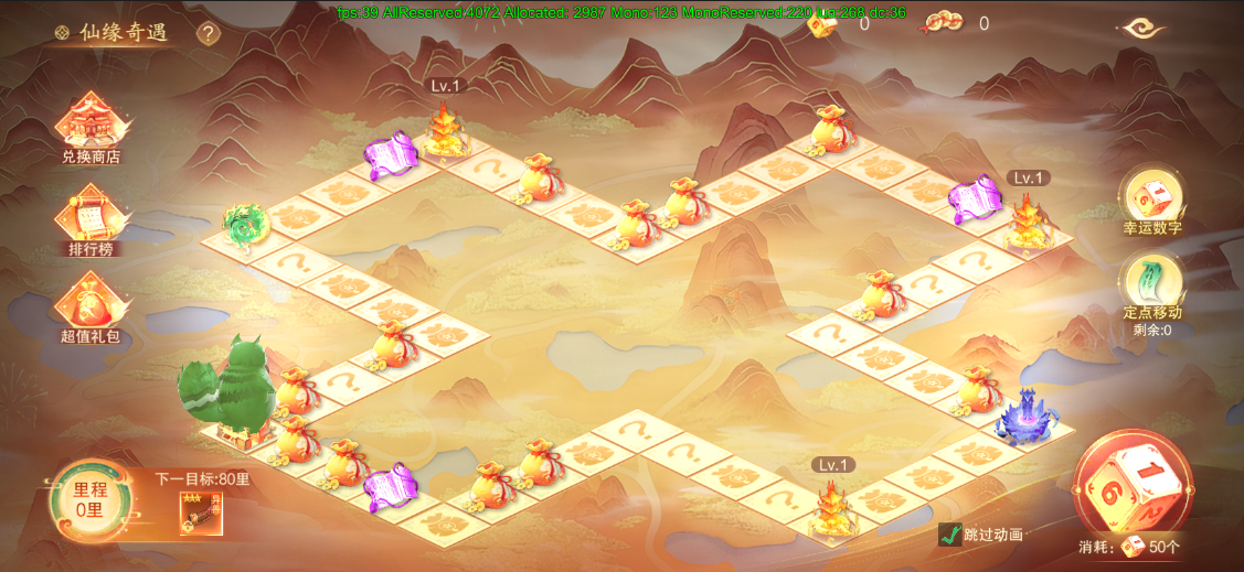 玩家可选择一个幸运数字,每次停留在仙缘洞天都会增加一次抽奖次数。抽取到所选的幸运数字时,玩家可获得幸运大奖