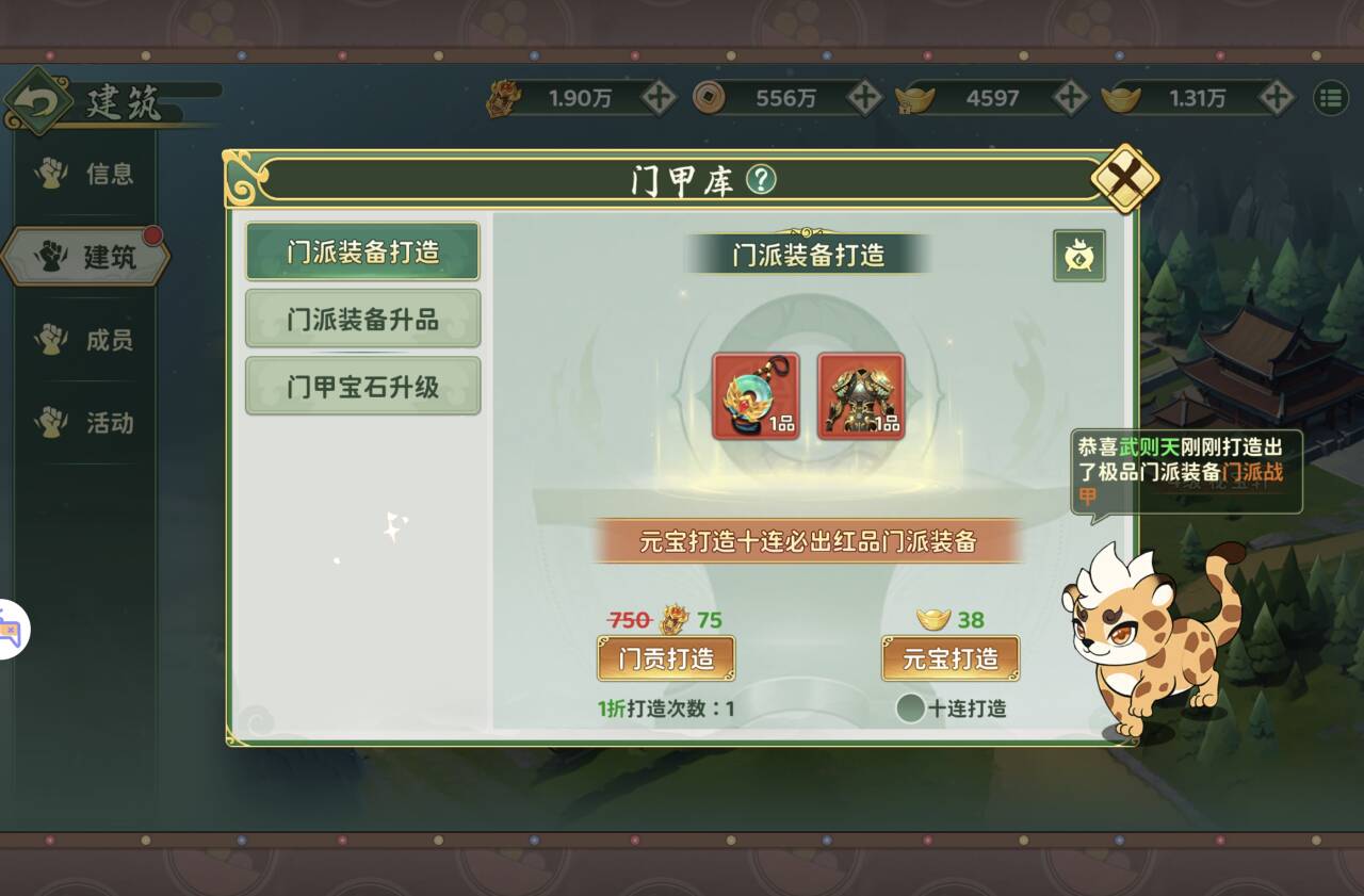 同时把1折门贡打造,金库铜钱捐献拉满。