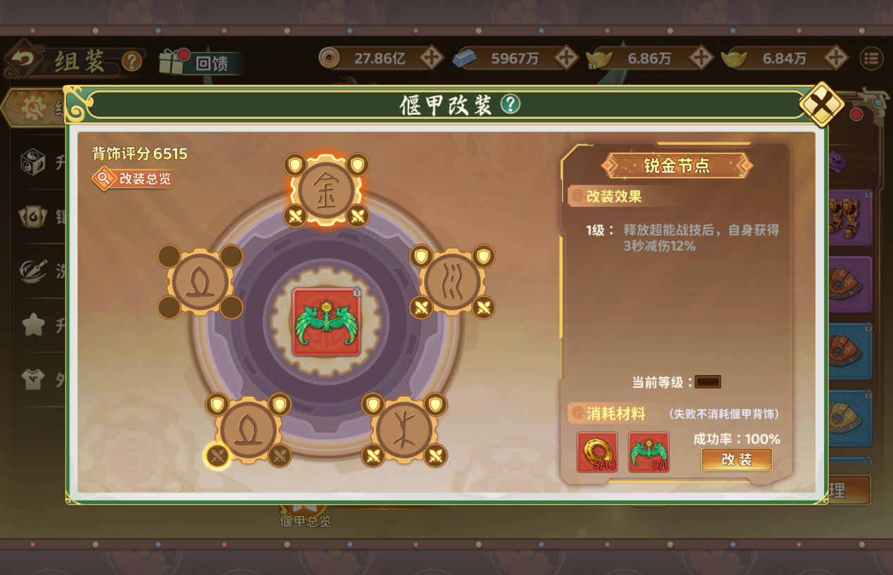 5.相同槽位的偃甲背饰共享小节点的改造进度,无需再次改造。