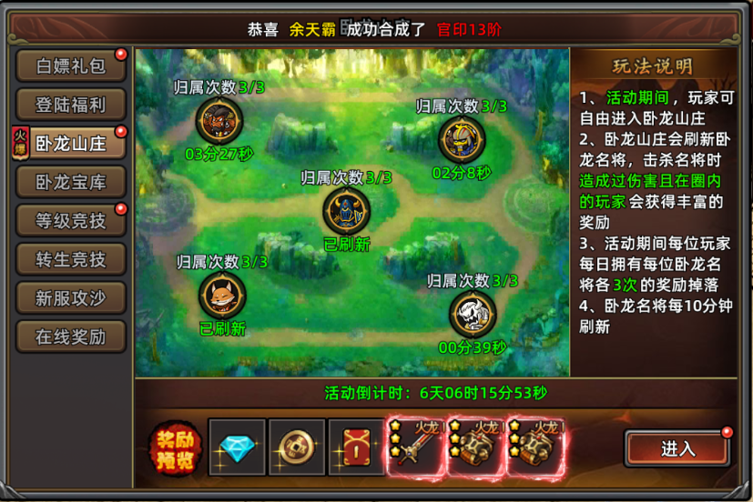 福利副本也是获取装备的重要来源,如挑战 “妖王乱世”“卧龙山庄”“古神来袭” 等副本,有机会赢得幻武、时装、特戒等稀有装备。
