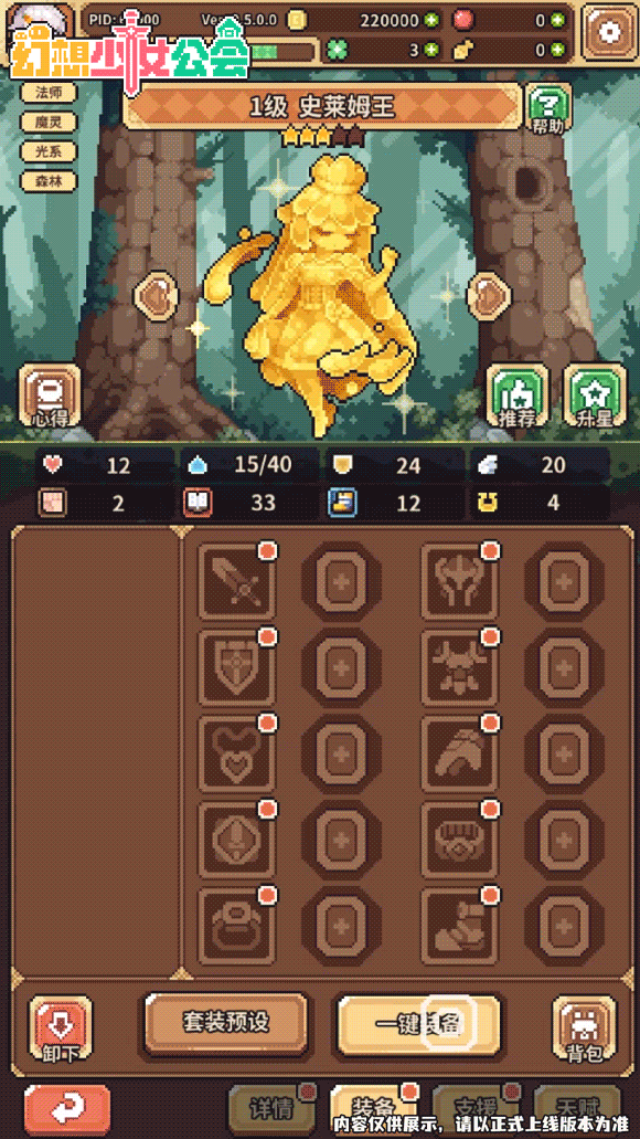 装备、符文太繁杂,不知如何选择?游戏内可以一键装配装备与符文,自动搭配适宜的羁绊,更有分阶段(前期/中期/后期)推荐方案供会长大人快速应用——化繁为简,轻松上阵!